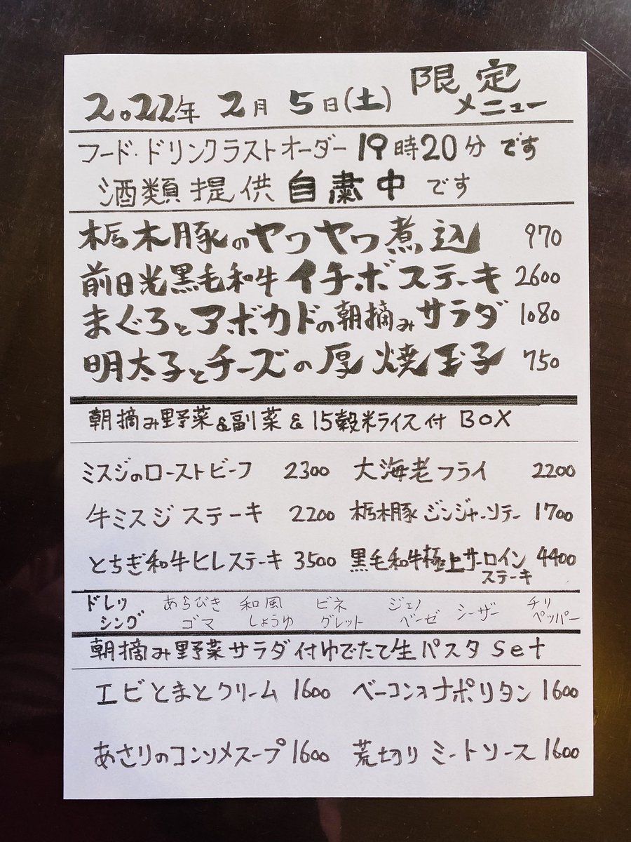 本日の限定 #テイクアウト メニューです。本日も #時短営業 19時20分 フードドリンクラストオーダー20時00分 クローズ...
