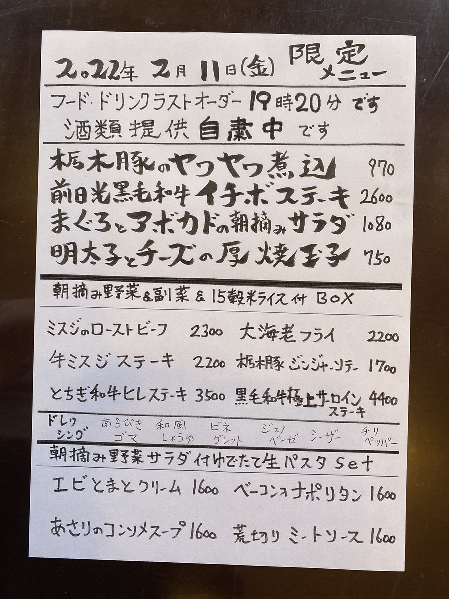 本日の限定 #テイクアウト メニューです。本日も #時短営業 19時20分 フードドリンクラストオーダー20時00分 クローズ...