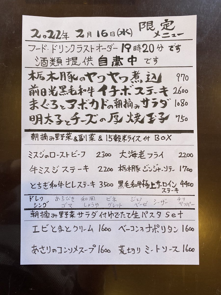 本日の限定 #テイクアウト メニューです。本日も #時短営業 19時20分 フードドリンクラストオーダー20時00分 クローズ...