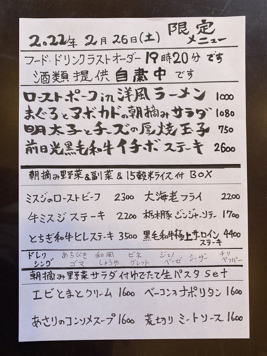 本日の限定& #テイクアウト メニューです。本日も #時短営業