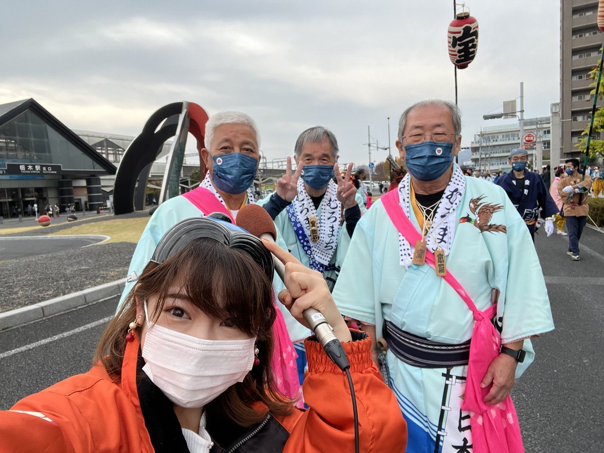 昨日までの3日間、本当に多くの方にお声をかけていただきありがとうございました✨インタビューした室町の皆様との一枚です🥰桃太郎の被り物を被せてもらいました💓見えるかな?