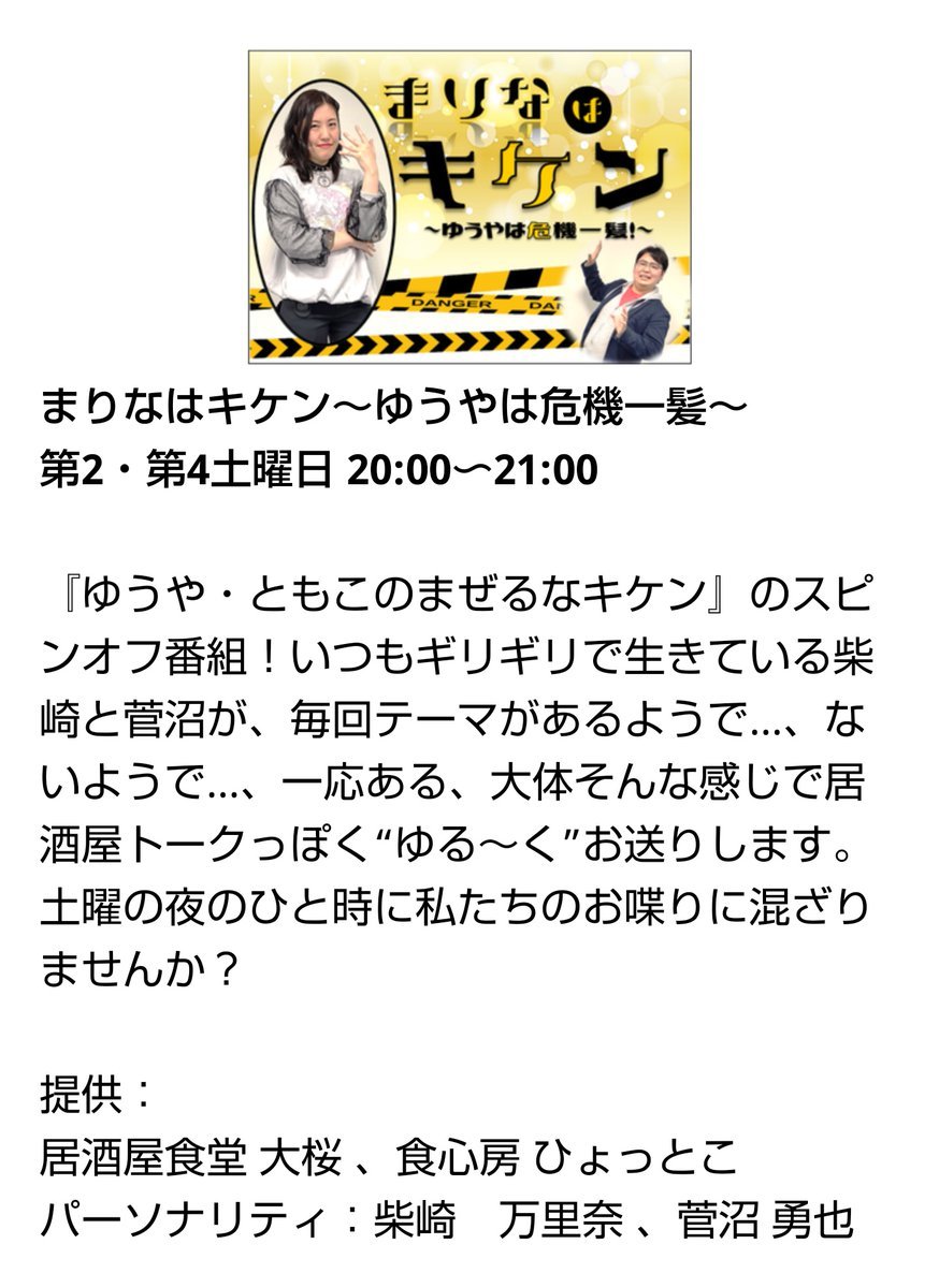 【まりなはキケン】この後20時から放送‼️テーマは「過去を振り返らない」人生前向きに生きたいものですね…👊柴崎さんが言いたいこ...