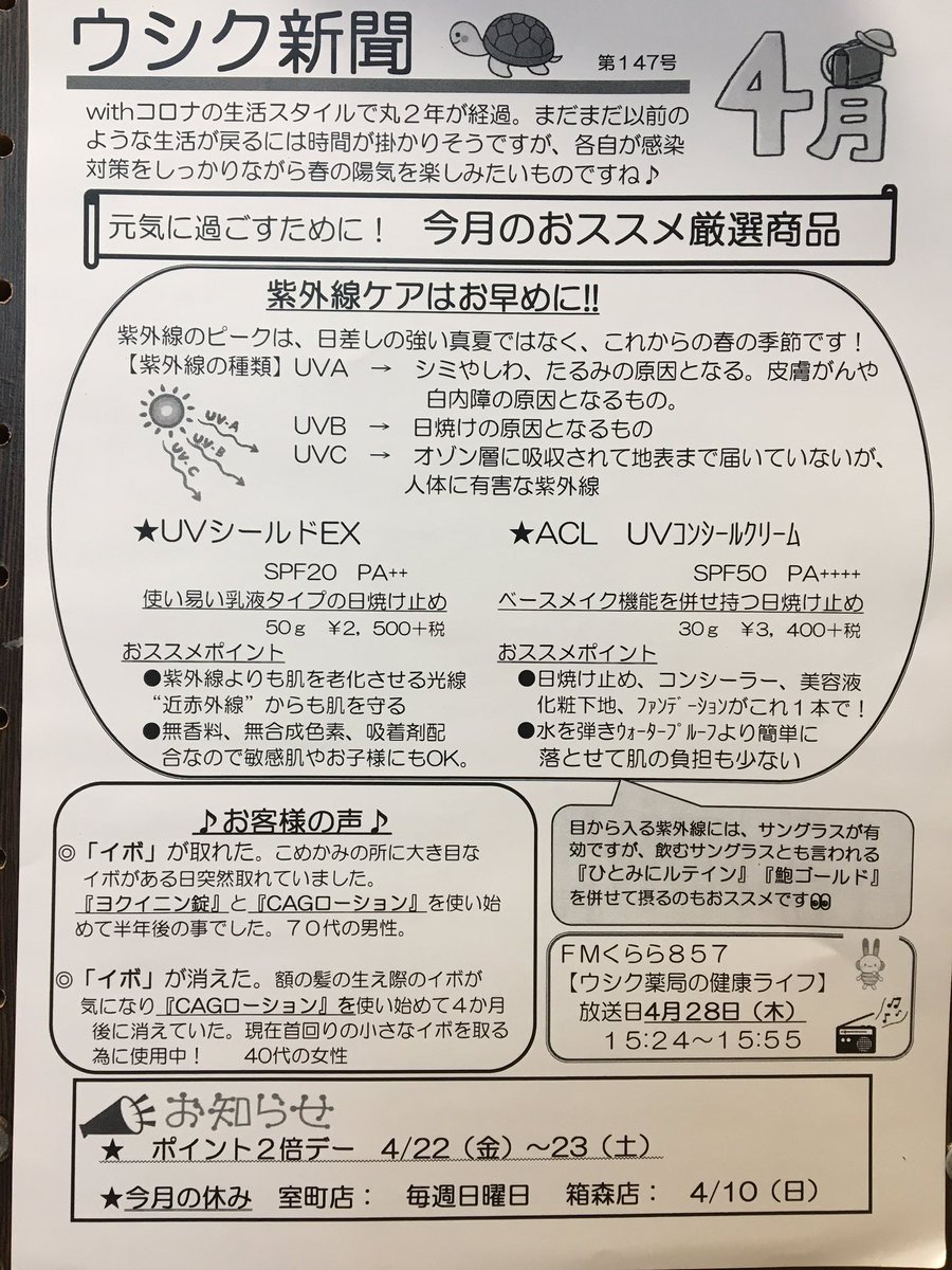 15時24分からは「#ウシク薬局の健康ライフ」🐮💊花粉症の方、まだまだ辛い時期が続きますね😭いかがお過ごしですか?春になり、花...