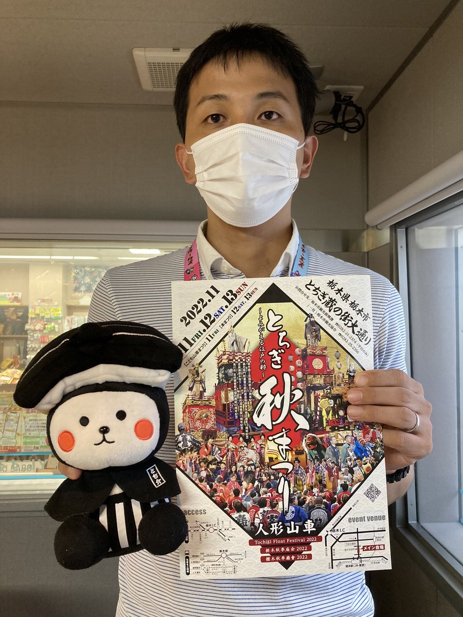 今日は、ミニとち介ととちぎ秋まつりのチラシを持って来てくれました✨