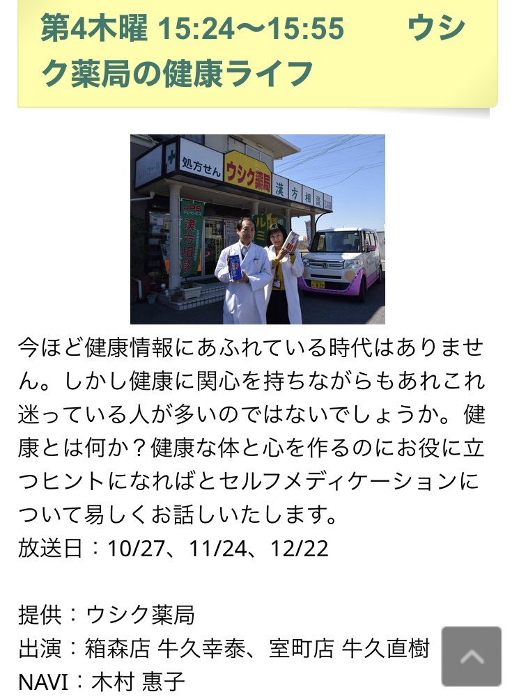 15時24分からは、「#ウシク薬局の健康ライフ」🐮💊秋は、夏の疲れが出やすく体調を崩しやすい時期です😣本格的な寒さに向けてこの時...