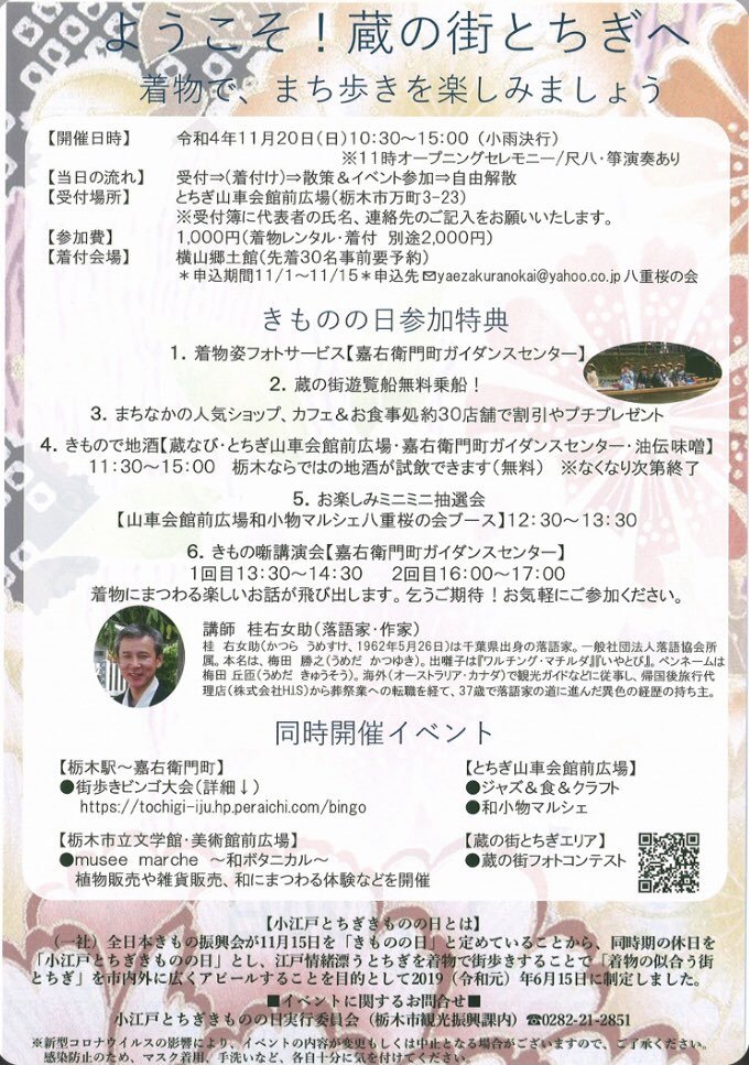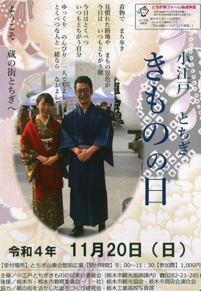 11月20日に小江戸とちぎ着物の日を開催👘着物を着て歩きましょう🎵色々な特典もあるそうです✨