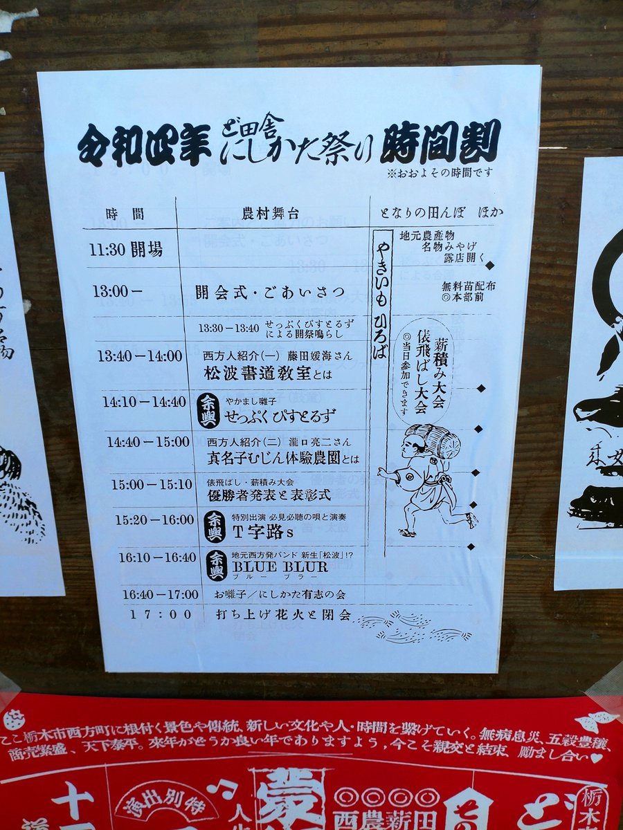#ど田舎にしかた祭りその十二 👏道の駅にしかた西側の田んぼで開催🌾13時〜17時まで😄余興やお囃子あり🎵俵飛ばし・薪積み大会あり🎵土産物.....