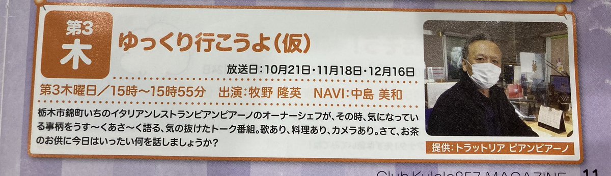 本日15時からは【#ゆっくり行こうよ(仮)】#トラットリアピアンピアーノ の提供でお送りします🎙✨オーナーの牧野さんによる、音楽♬や...
