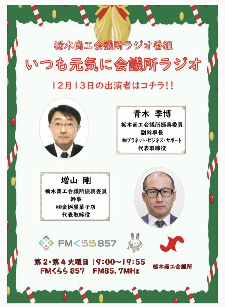 19時から『いつも元気に会議所ラジオ』スタートしました😆今日の出演はこちらのお二人です‼️#栃木市 #FMくらら857 #栃木商工会議所