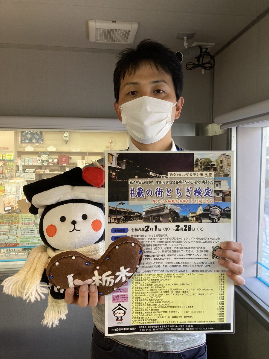 #広報課 藤岡おにいさんがご出演です!バレンタインver.の小さいとち介と一緒に来てくれました🍫