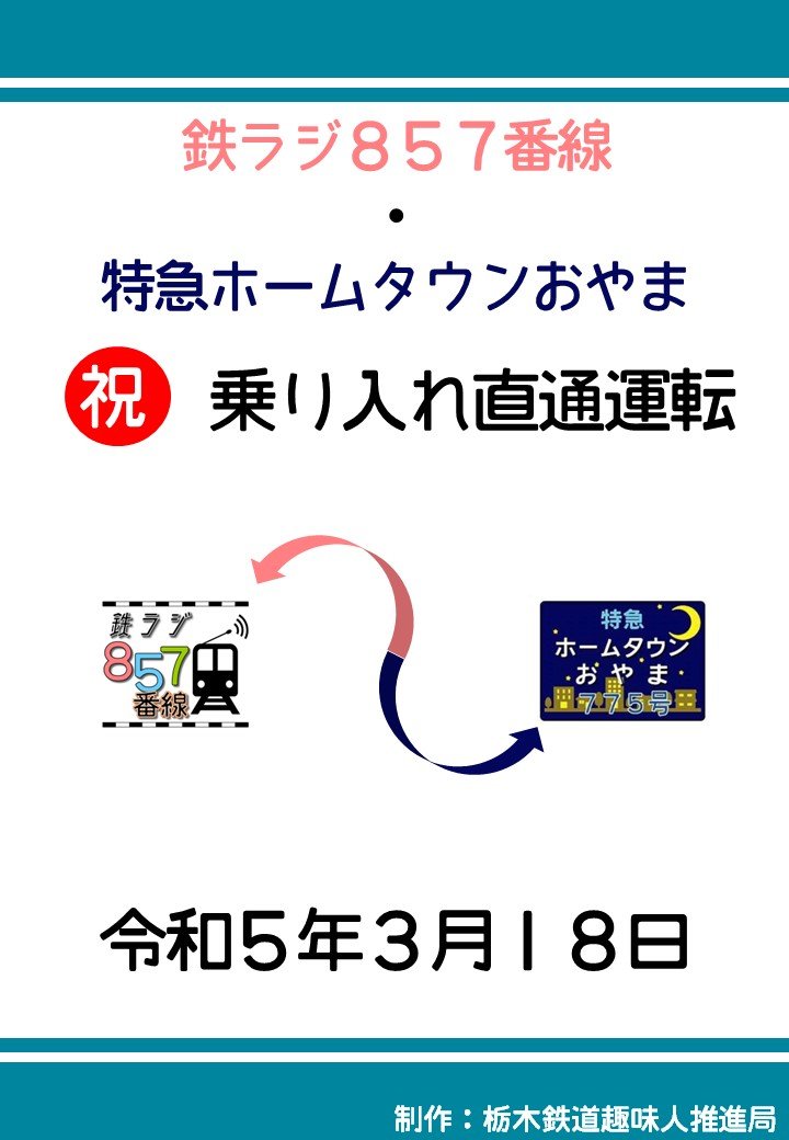 【鉄ラジ!857番線】本日18時から‼️今回も、栃木県内の鉄道ラジオ番組同士で相互乗り入れ🔄ゲストに #おーラジ 鉄道番組「特急ホー...