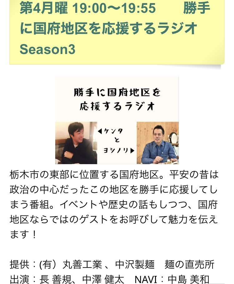 このあと19時からは『勝手に国府地区を応援するラジオ Season4』📣