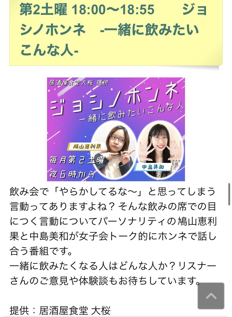 本日18時からは、『ジョシノホンネ-一緒に飲みたいこんな人-』🤭㊙️初回大好評だった(自分で言っちゃう)この番組、今回で2回目の放...