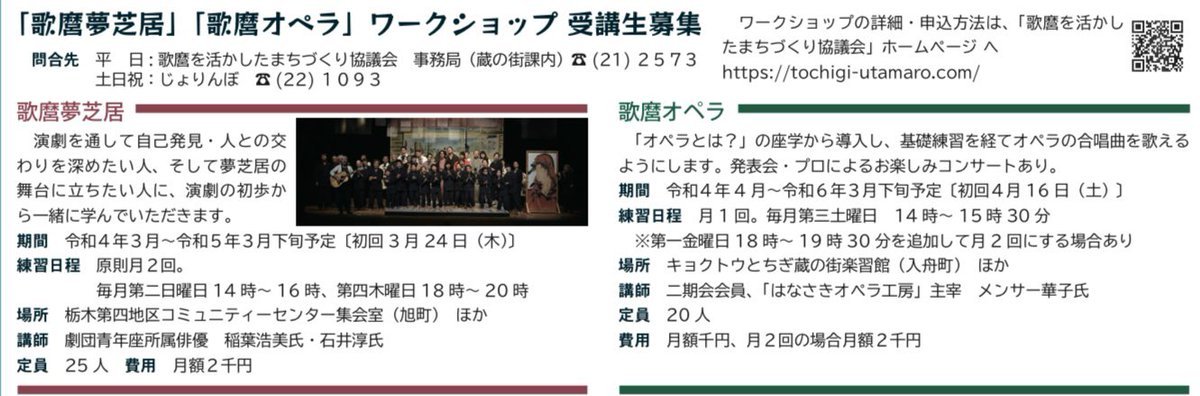 #歌麿夢芝居、#歌麿オペラ のワークショップ受講生を募集しています!