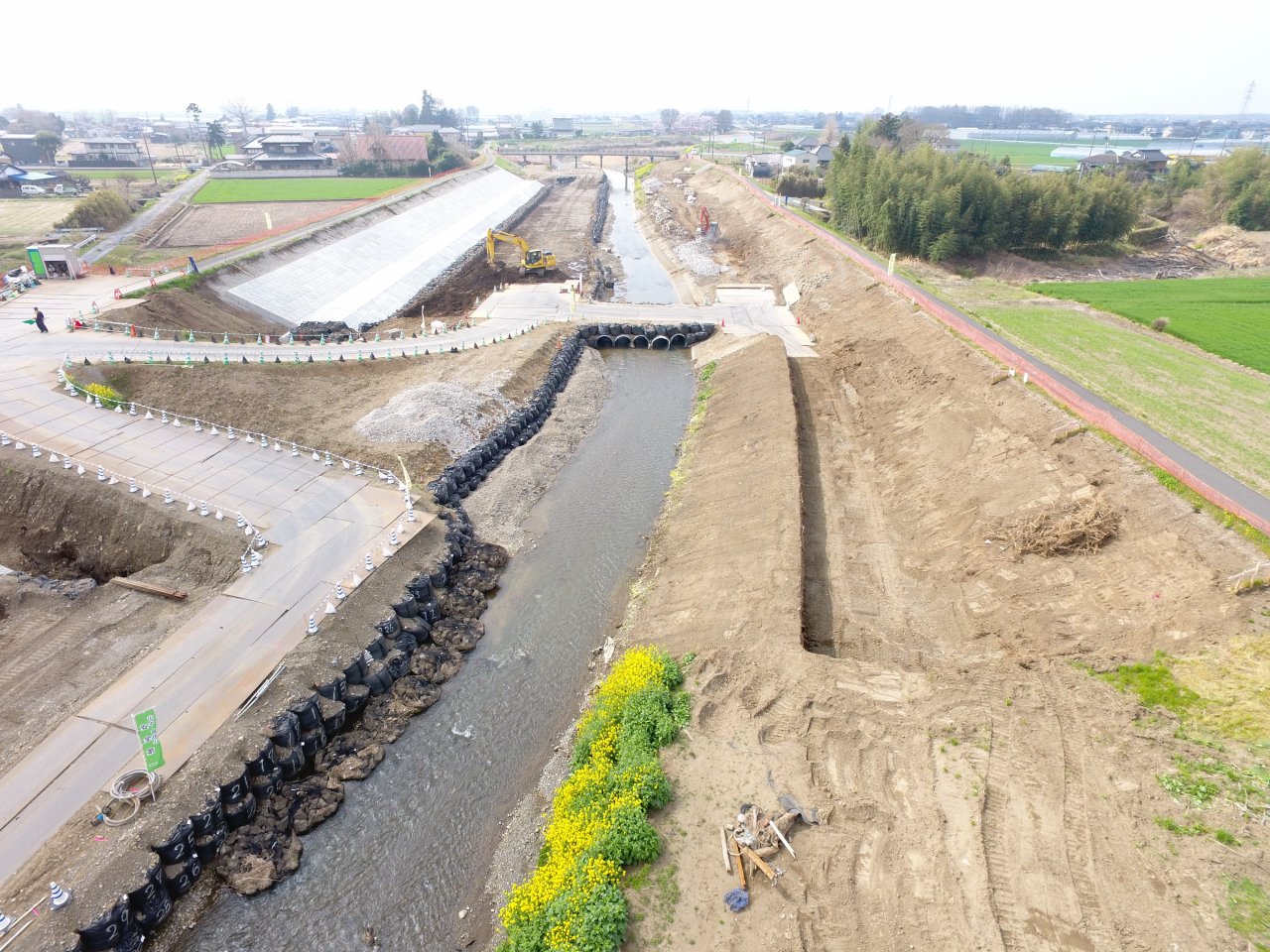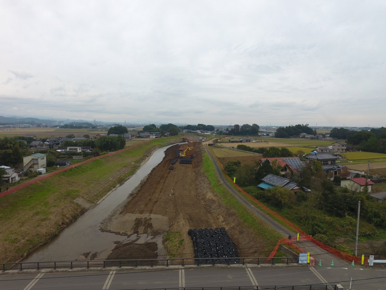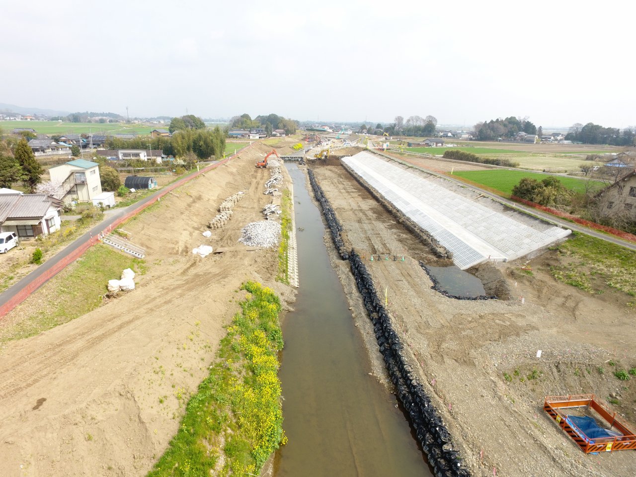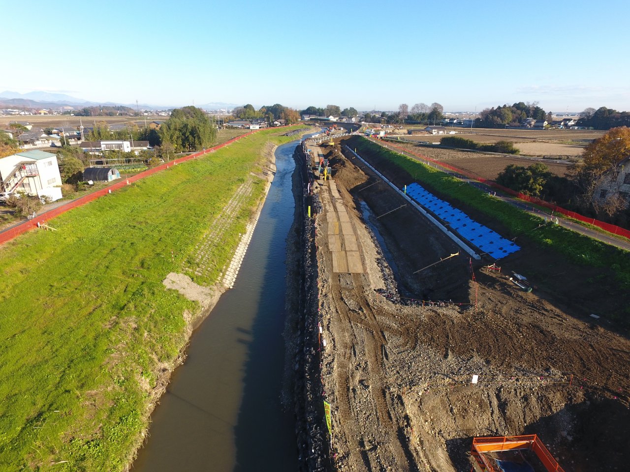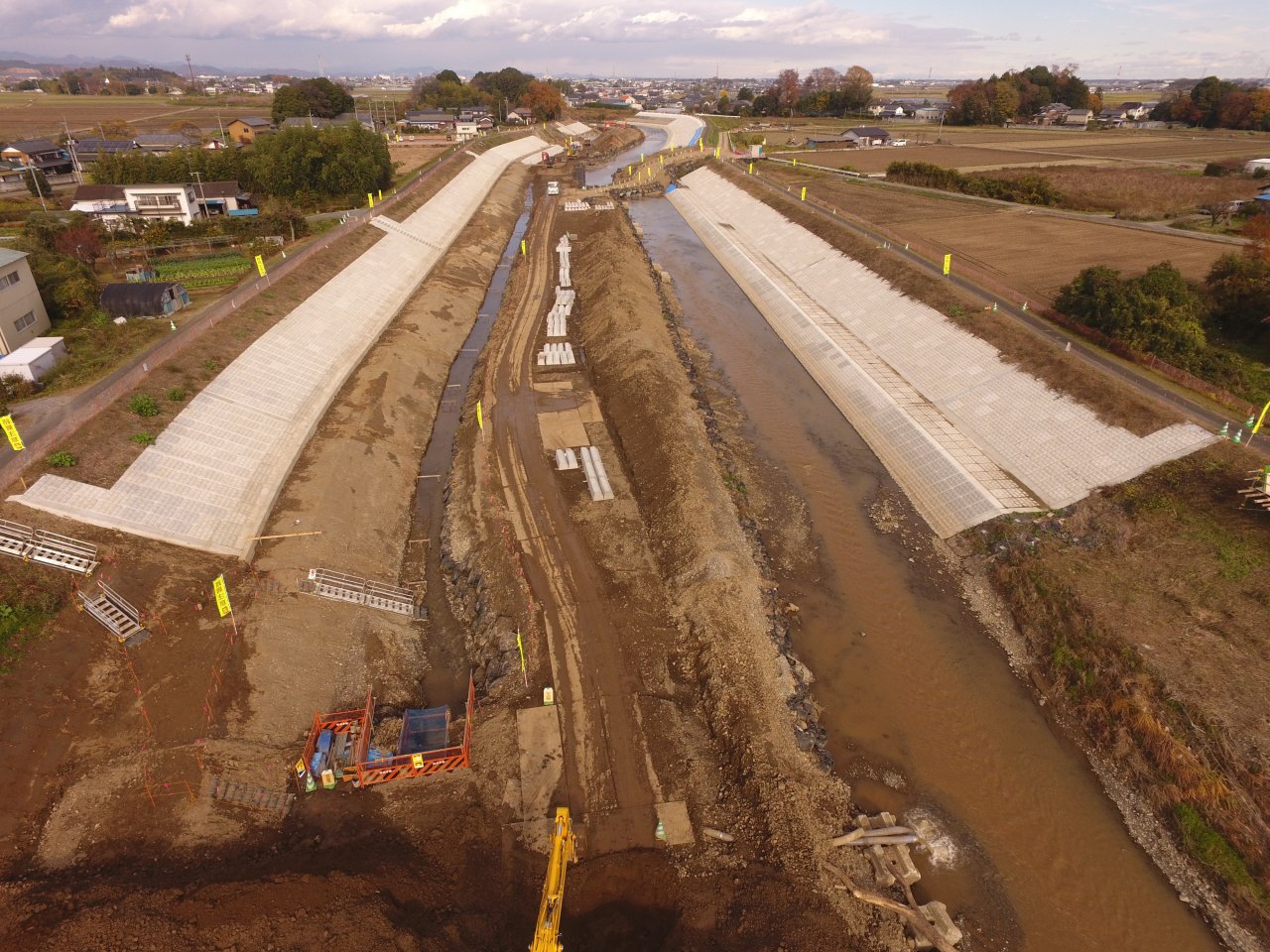 令和元年東日本台風(台風19号)の被害による改良復旧工事 護岸工事その16(両明橋北上流側より)