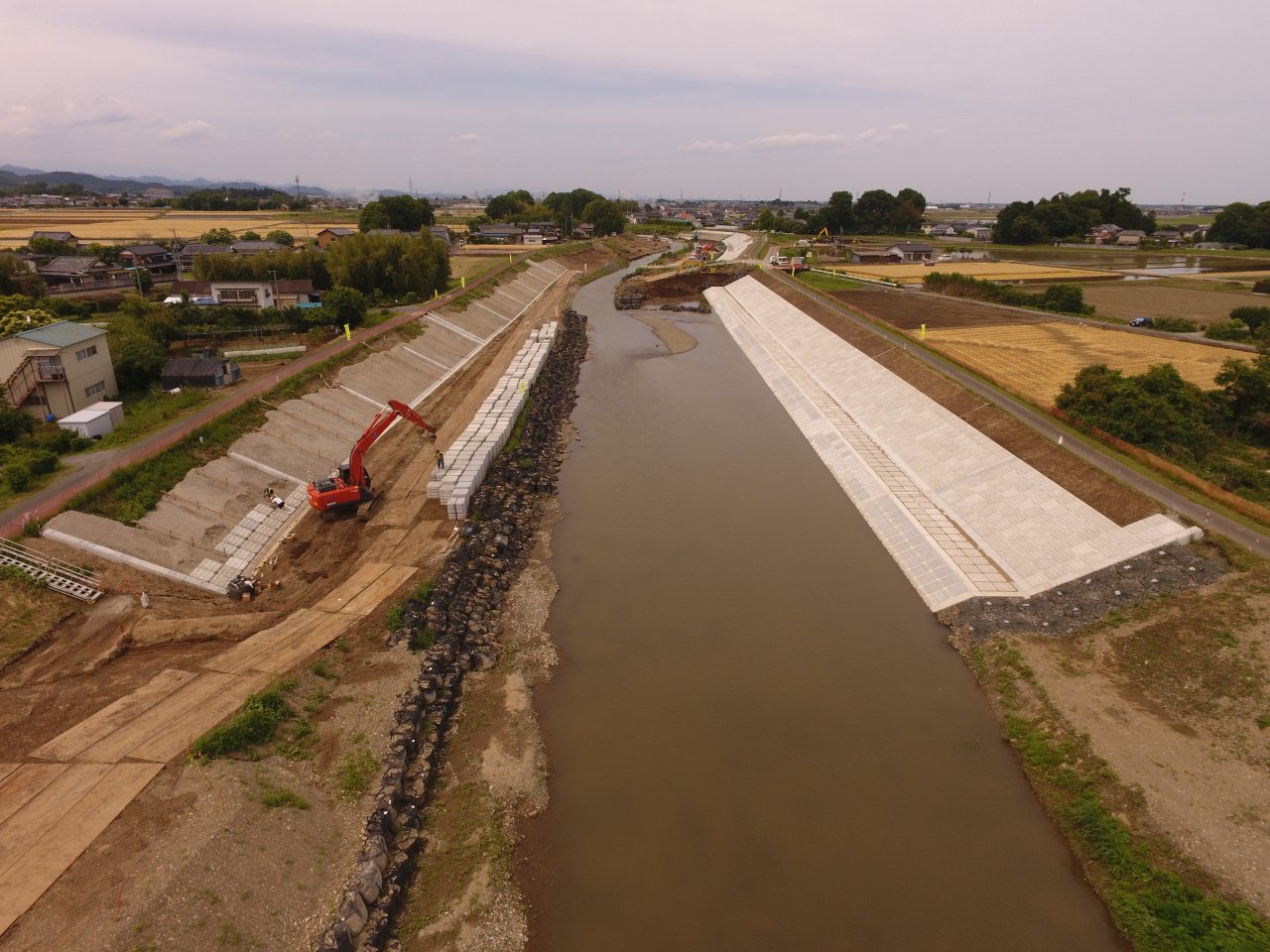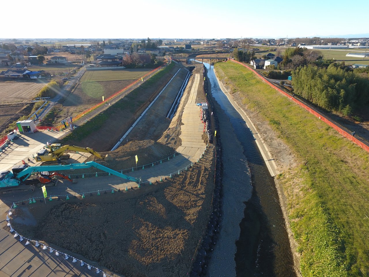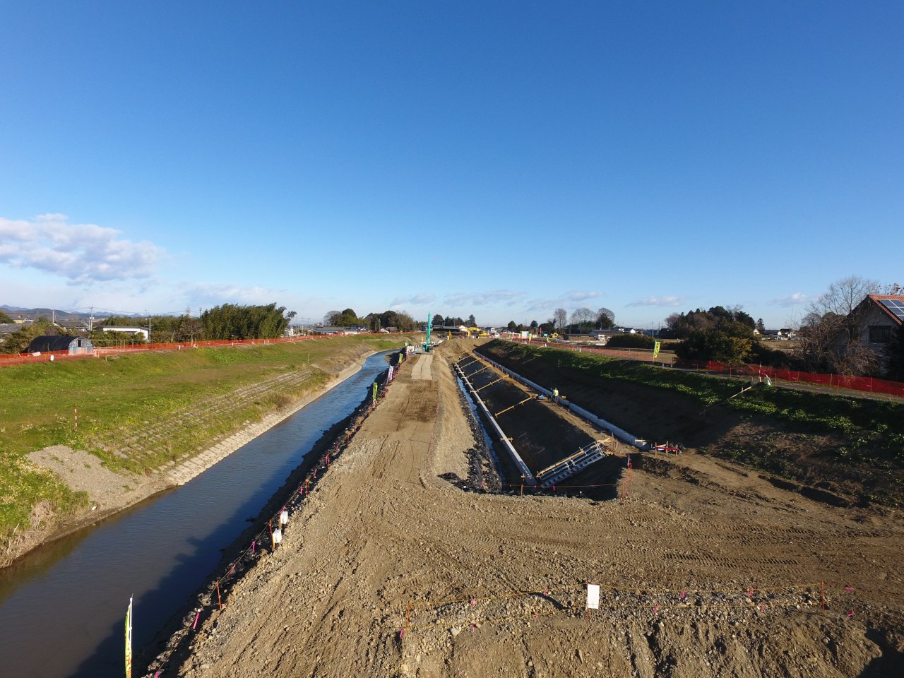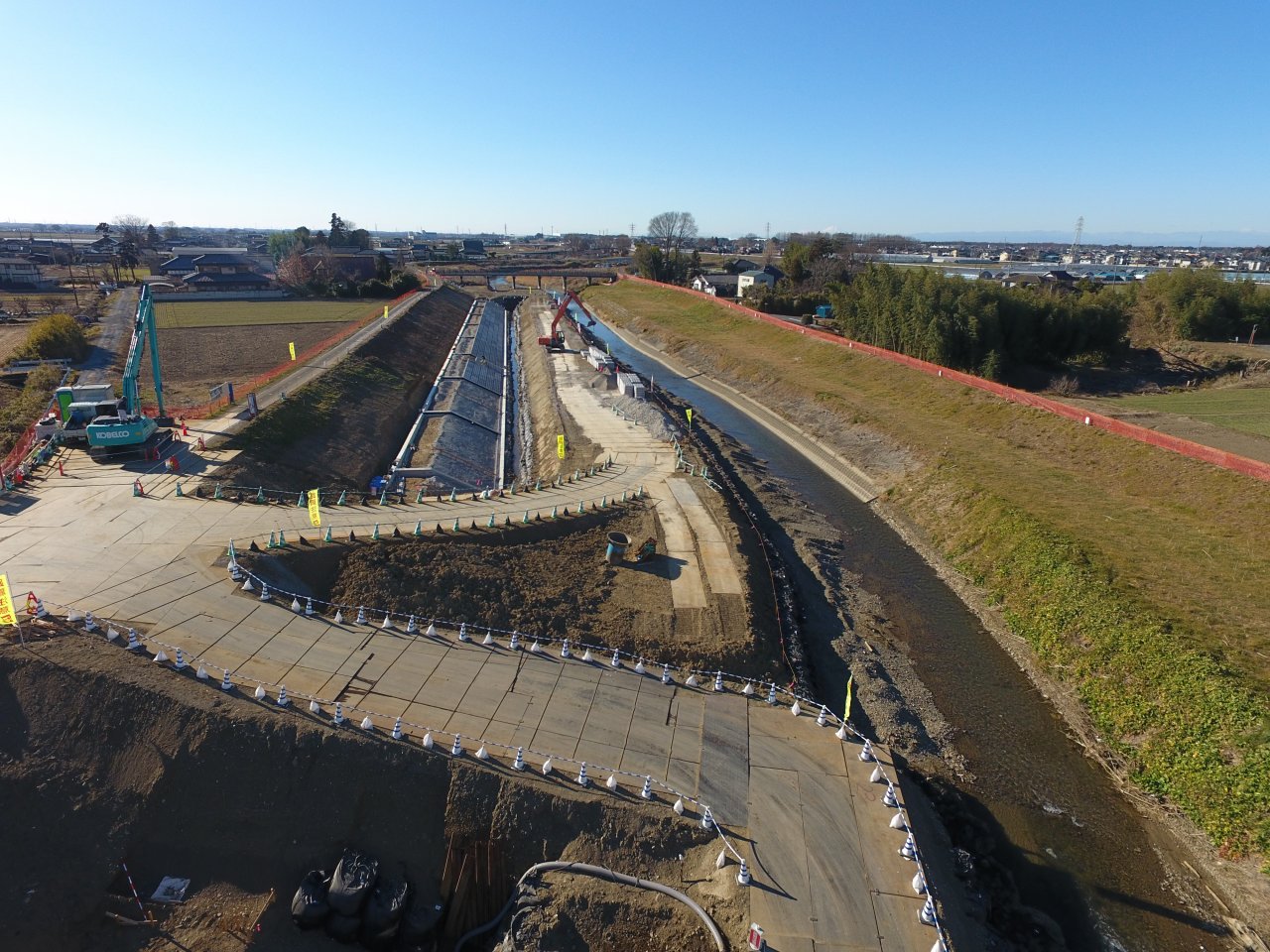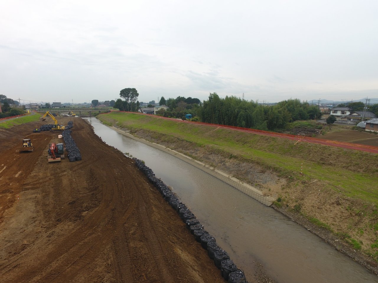 令和元年東日本台風(台風19号)の被害による改良復旧工事 護岸工事その16(両明橋北上流側より)