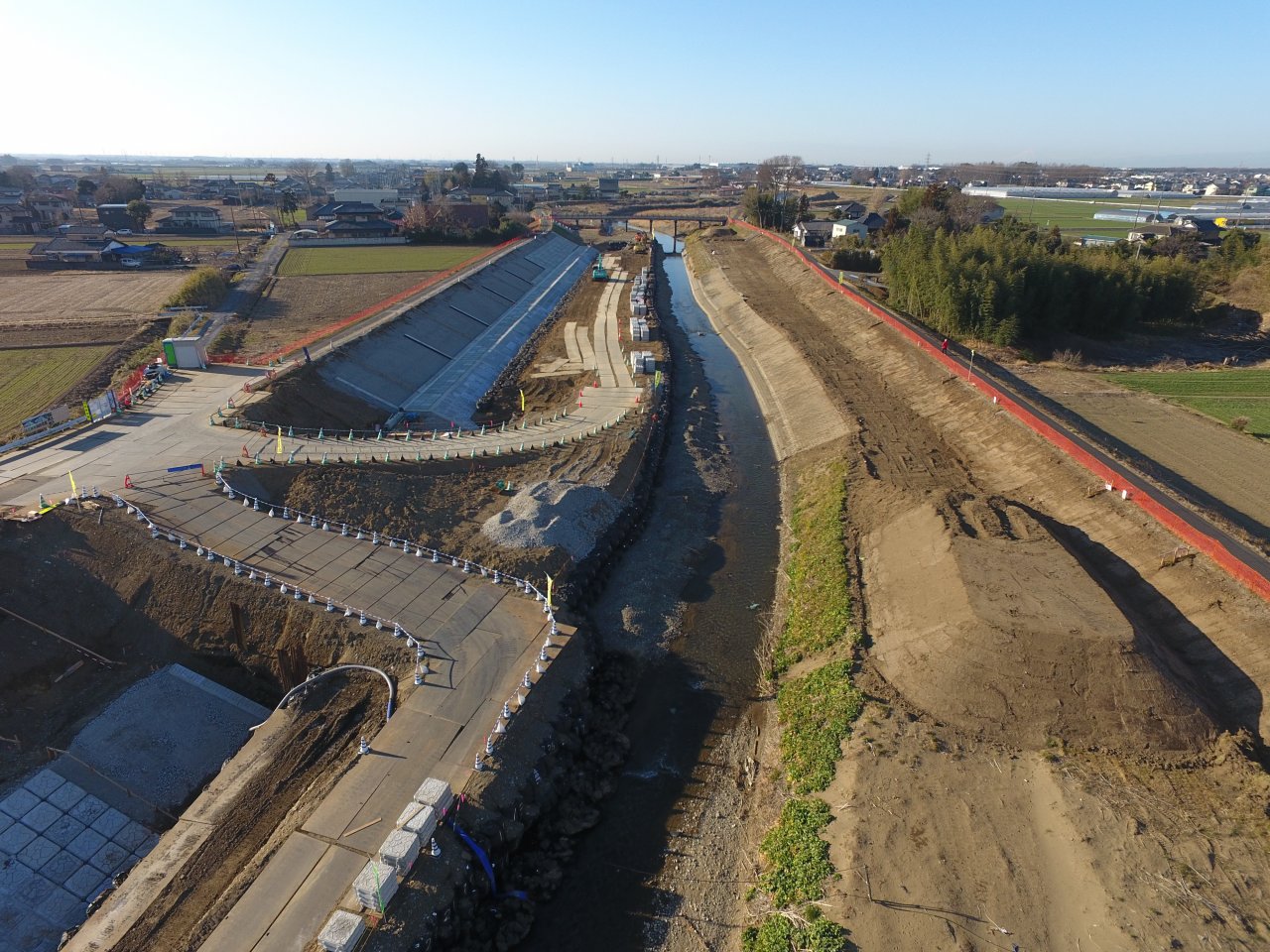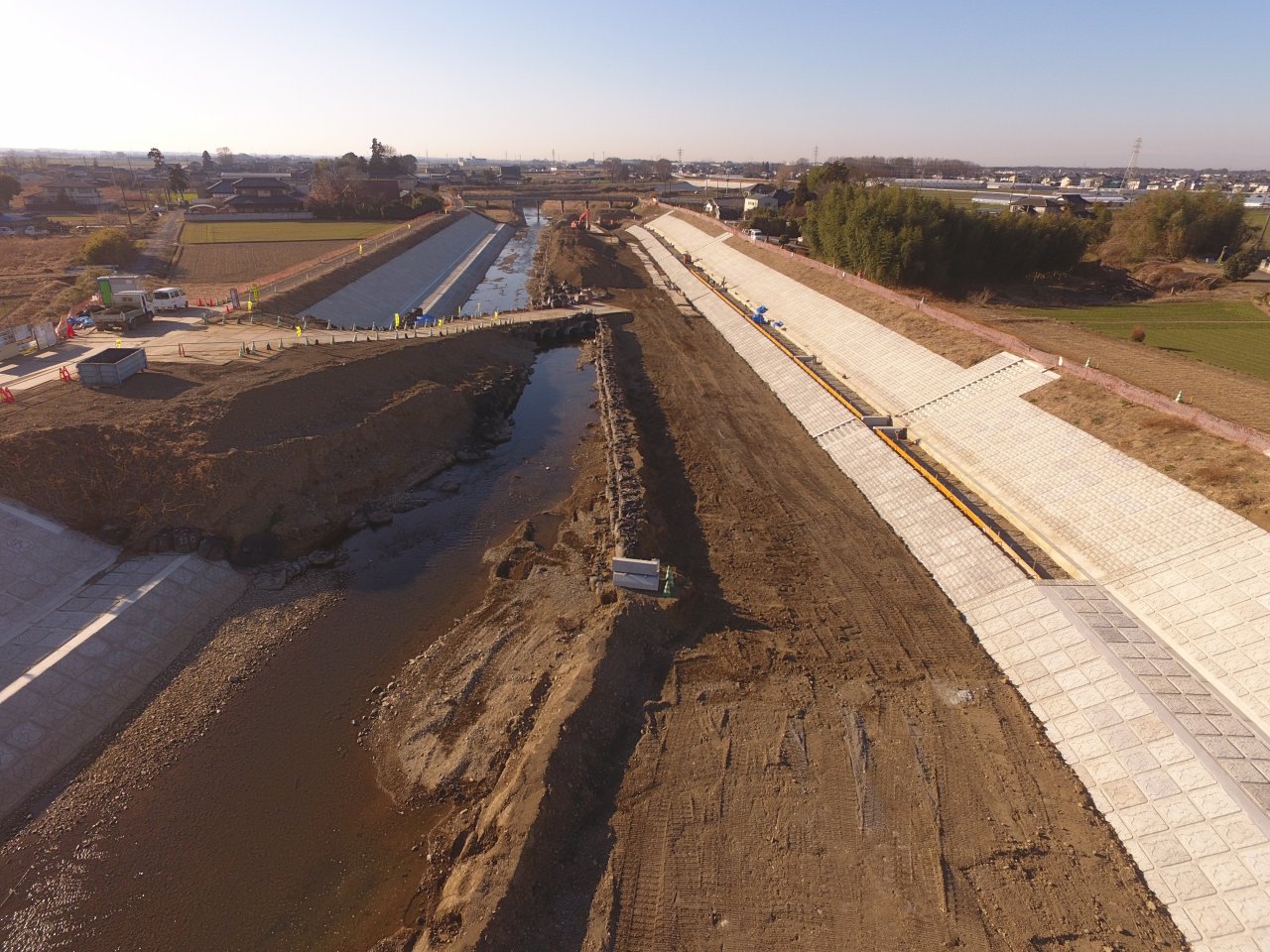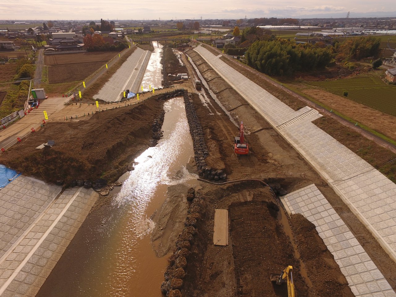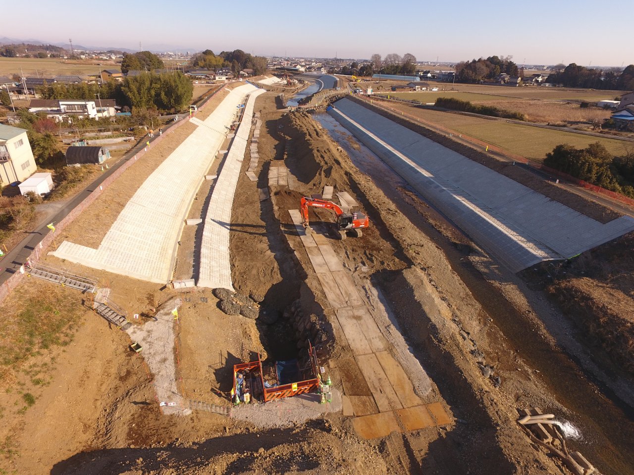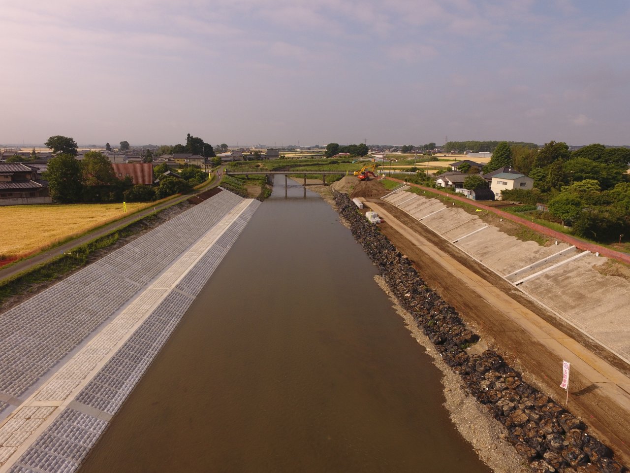 令和元年東日本台風(台風19号)の被害による改良復旧工事 護岸工事その16(両明橋北上流側より)