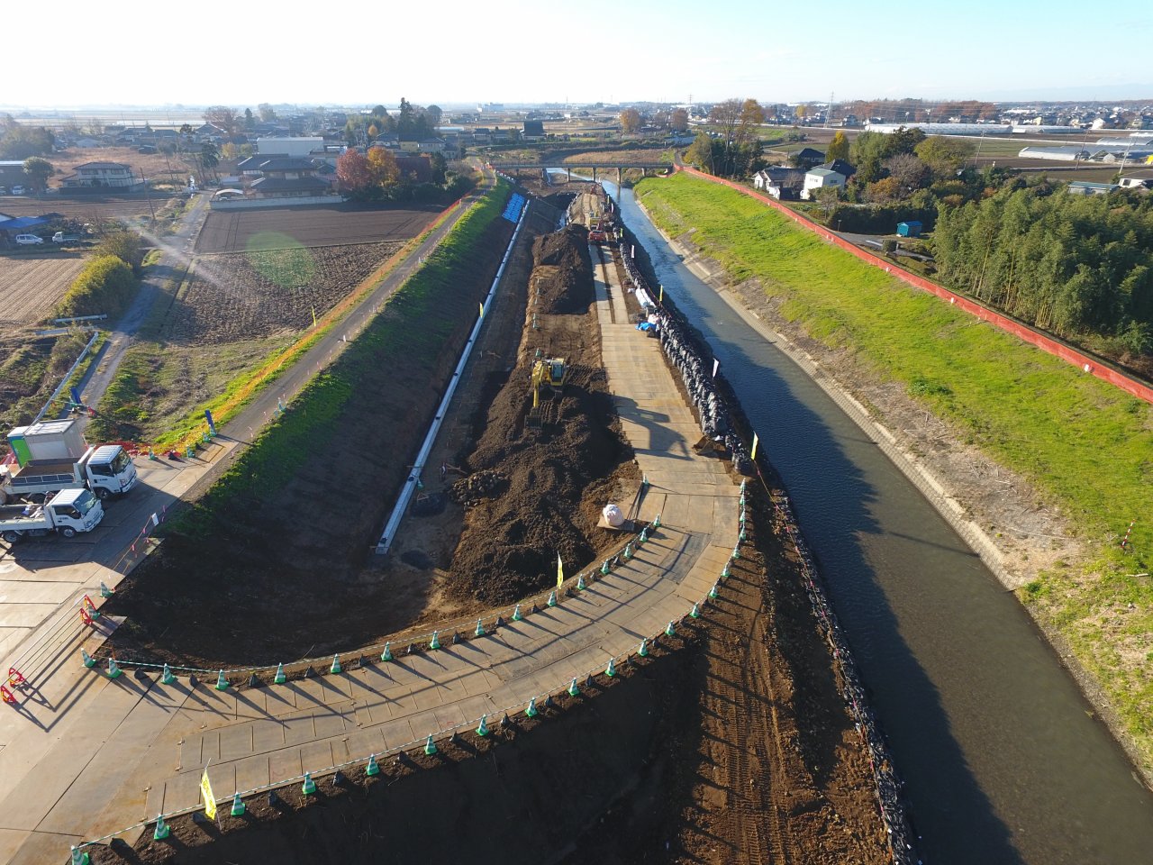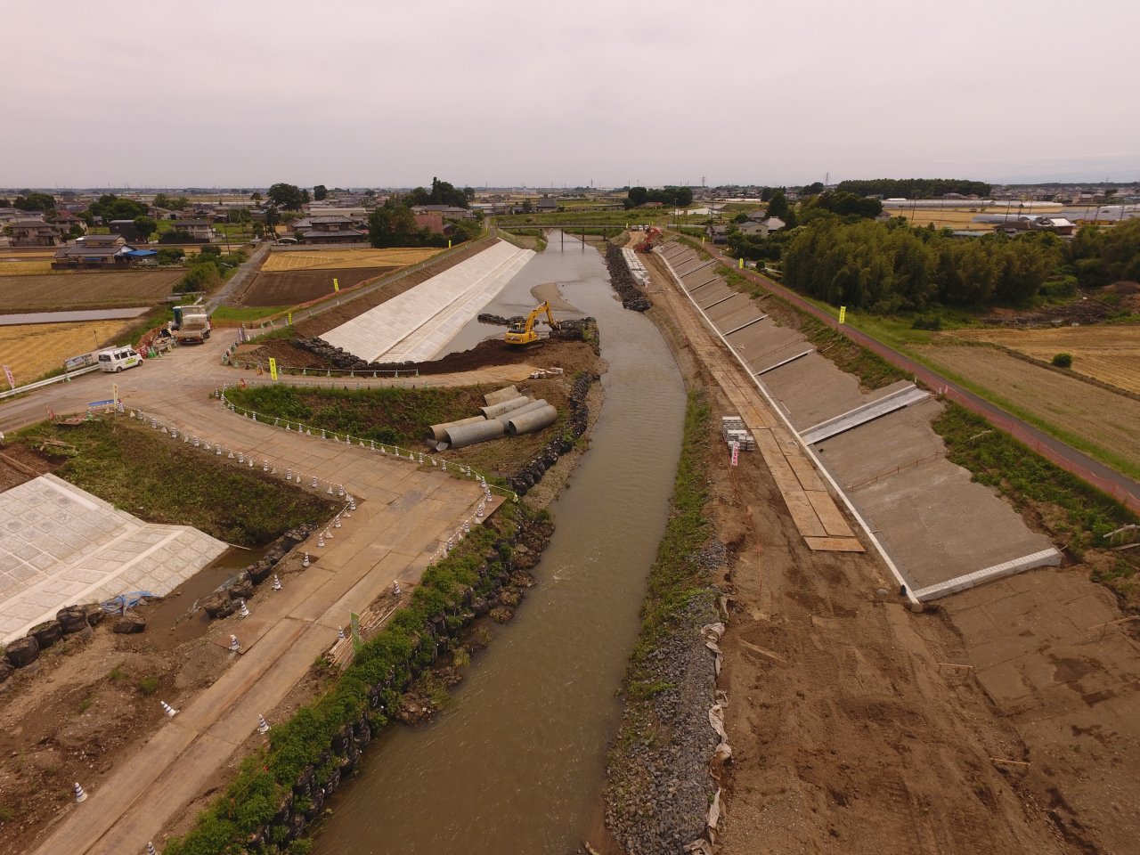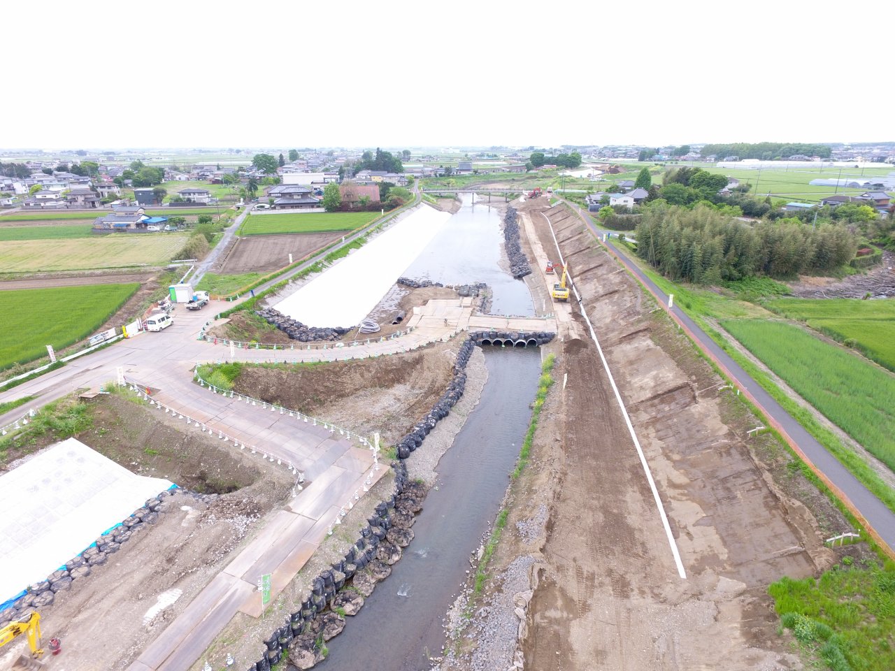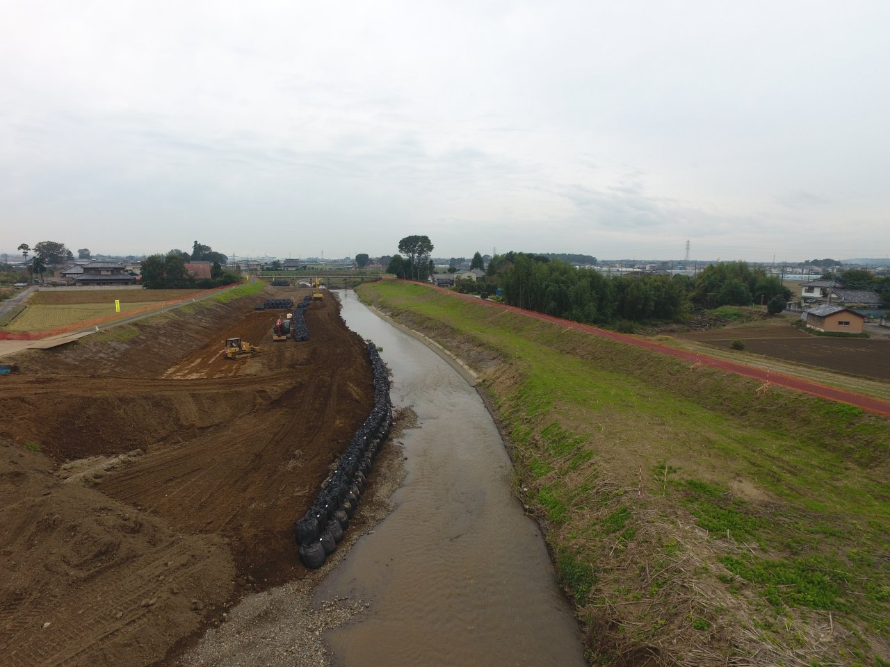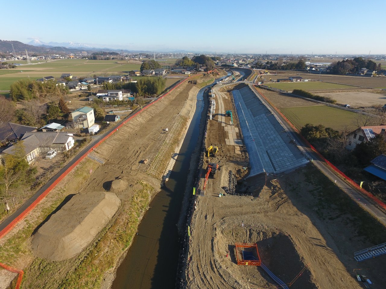 令和元年東日本台風(台風19号)の被害による改良復旧工事 護岸工事その16(両明橋北上流側より)