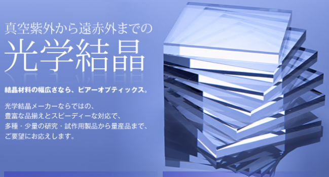 ピアーオプティックスは、光学結晶(光学ガラス)、CaF2 、MgF2等を製造、その他各結晶の供給、ブランクス、スパッタリング材料、コーティング材料の提供も行っています。