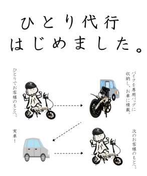 さくら運転代行は、栃木市初となる折りたたみバイクを利用した新しい形の運転代行サービスです。お客様の車に同乗して目的地まで安全にお送りしたあと、たたんだバイクを車に積み込んで戻るため、1人でも迅速な対応が可能です。