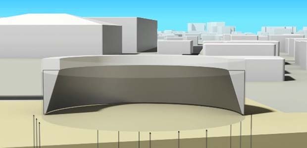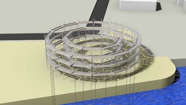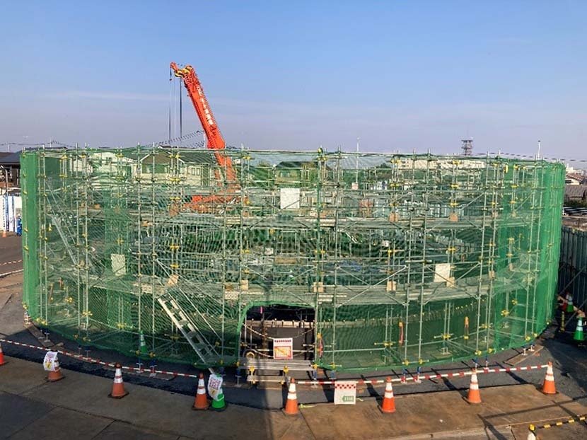 1ロット目の円形の構造物(直径約18m、高さ4m)を造るために外側と、内側に足場を設置しました。