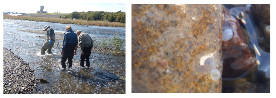 11月13日、造成を行った場所で写真のような産卵を確認することができました。50㎡ぐらいの人工産卵床に、20万粒ほどの卵が産み付けられたと推測しています。