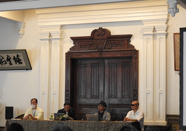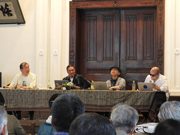 ※写真左から、コーディネーターの中村さん、デザイナーの横山さん、東京外国語大学大学院教授・鈴木賢二研究会の友常さん、彫刻家の大平さん