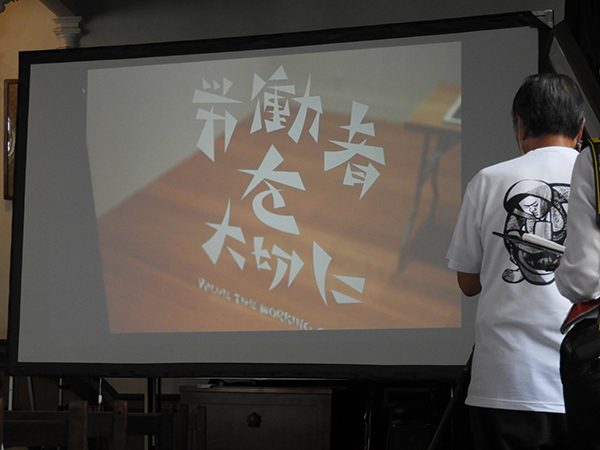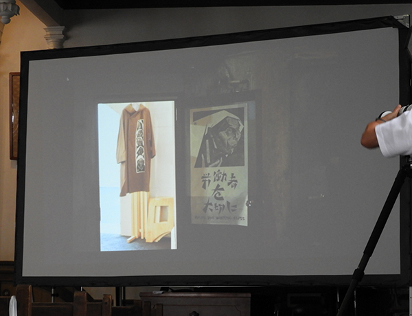 セレモニーの開会時間までは、鈴木賢二展の展覧会風景のスライドショーが上映されていました。