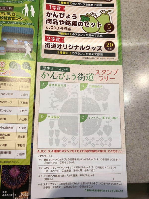 6月1日(木)から開催されている「歴史とロマンのかんぴょう街道スタンプラリー」に参加してきました。