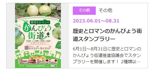 「歴史とロマンのかんぴょう街道スタンプラリー」は、8月31日(木)まで開催しています。