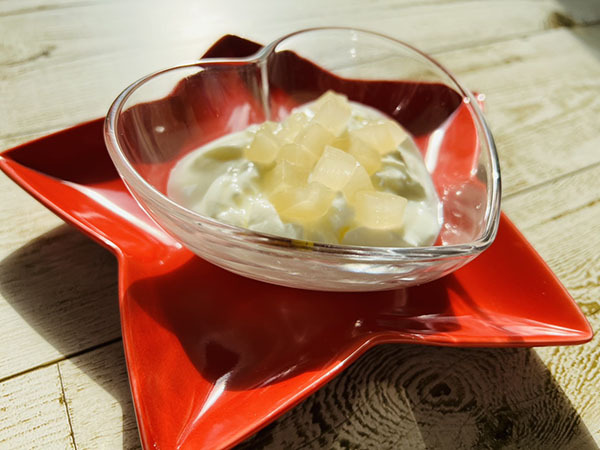 スタッフの方に美味しい食べ方をいくつか教えていただき、今回はヨーグルトと一緒にいただきました。