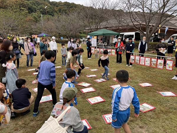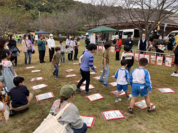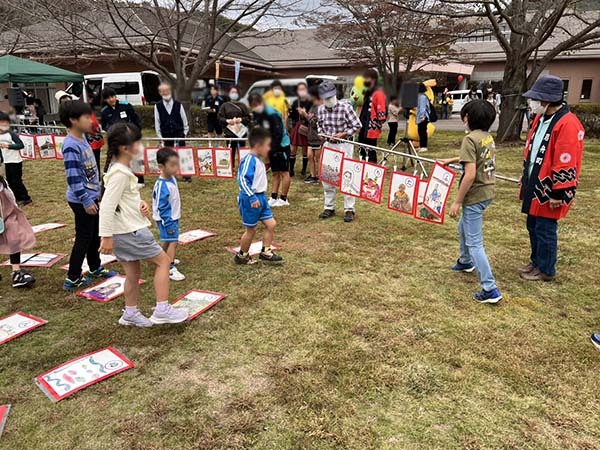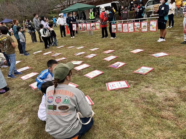 お外でやる大きなカルタは全身使って探せていいよね!