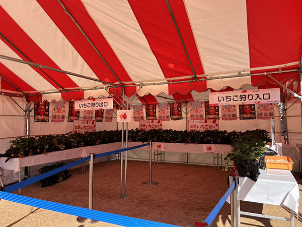 マルシェではいちご生産者団体や「いちご王国・栃木」協賛事業者などによる、いちごやいちご関連商品のブースが出展されていました。