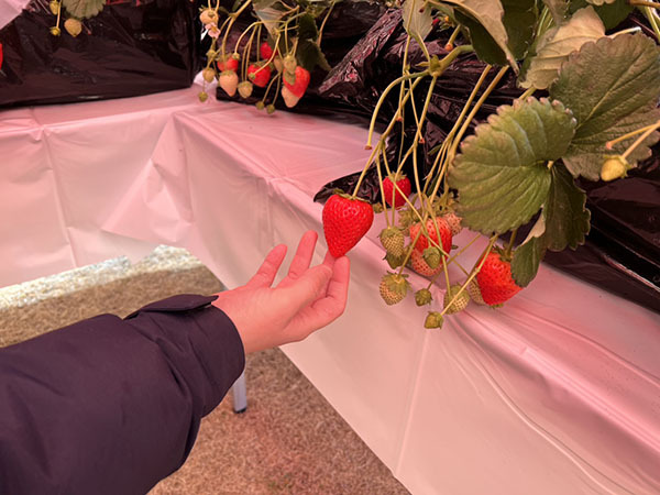 クイズラリーに答えていよいよいちご狩り体験へ。