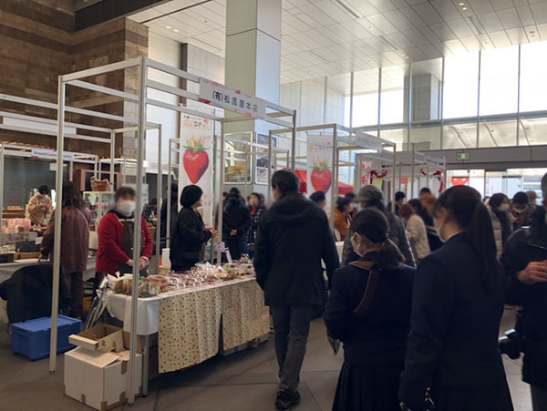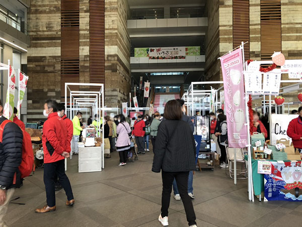 県庁本館1階ロビーでは「いちご王国」マルシェが開かれていました。