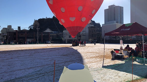 マルシェやいちご狩り体験のほかに、事前予約制でいちご型の熱気球体験も行っていました。
