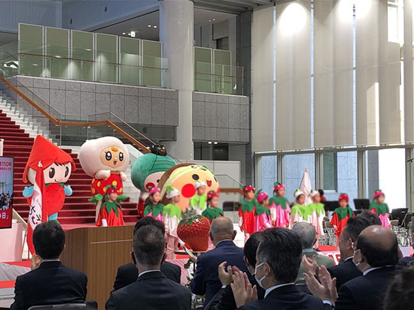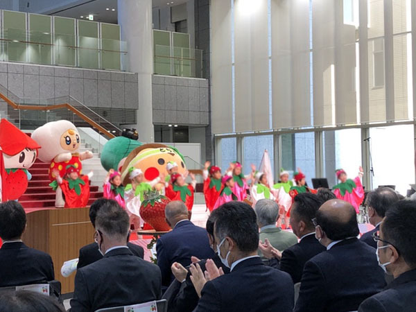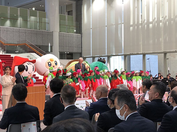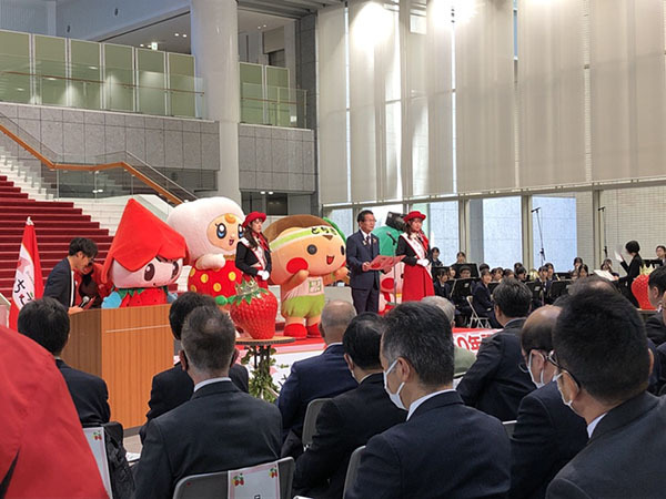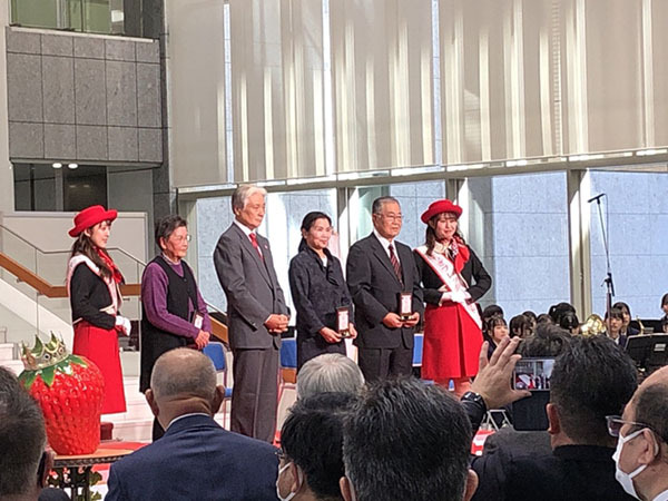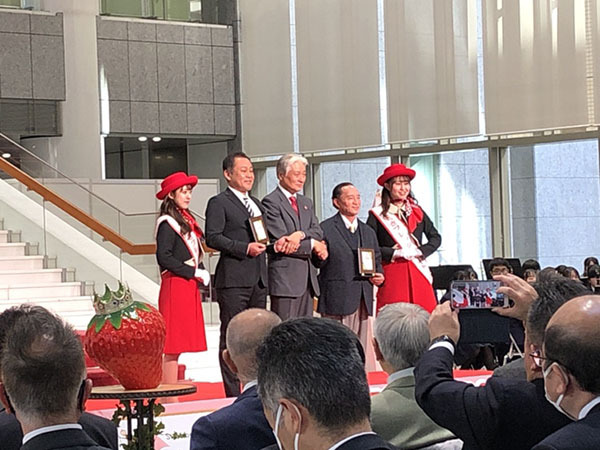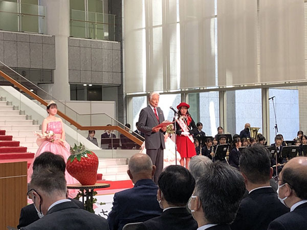 開会宣言の後はいちご王国の国王である福田富一栃木県知事がご登壇・ご挨拶され、各種表彰式が実施されました。