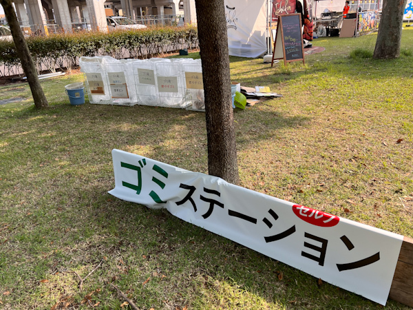 芝生を汚さないためにもゴミはゴミ箱へ〜