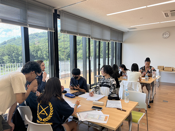 湯沢さん:メンバーは日本人の生徒10名とアメリカの生徒10名ぐらいの人数で、一緒に生活をしていただいています。基本的には、全部英語でお話をしていただいて、コミュニケーションを取っていただくというところを目指してます。