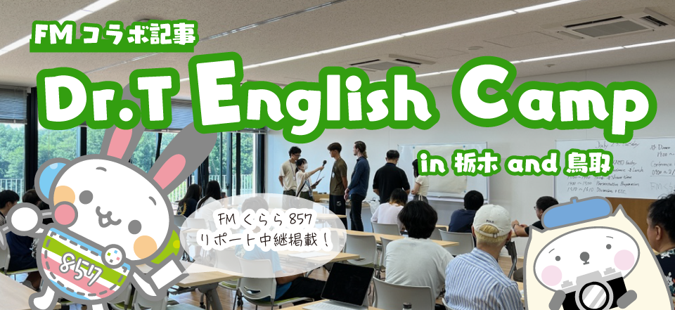 4月にオープンした「栃⽊JIMINIE倶楽部⾃然の家みかも」で「Dr.T English Camp in 栃木 and 鳥取」が開催されているということで、FMくらら857のリポート中継と一緒に取材させていただきました。