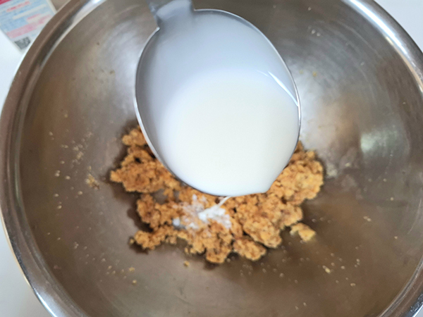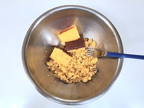 アーモンドプードル、ダイス(飾り用に少し取っておく)、生クリームの順に混ぜ入れる。