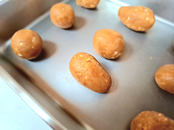 適量を手に取りながら、ジャガイモのような形に丸める。
