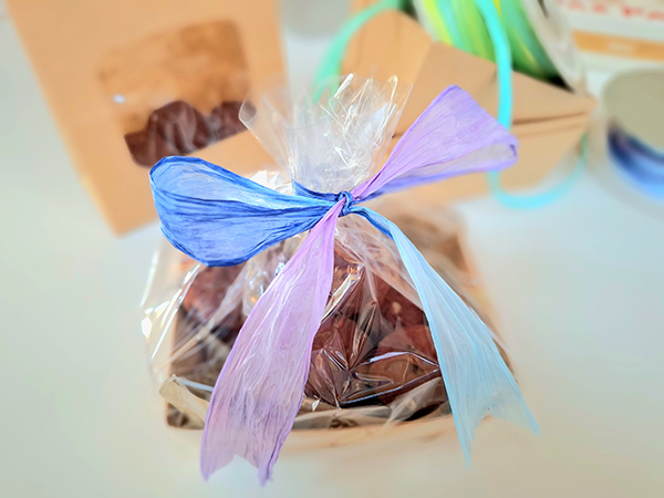 ラッピングには、100均の窓付き袋やパウンドケーキ型などを利用。