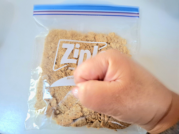 クラッカーはジップロックなどの袋に入れてグーで叩き、粉々にする。