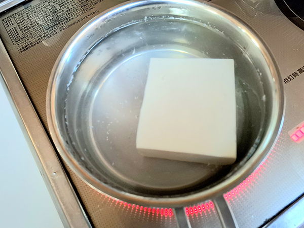 豆腐は軽く30秒くらい茹でて“豆腐臭さ”を抜く。