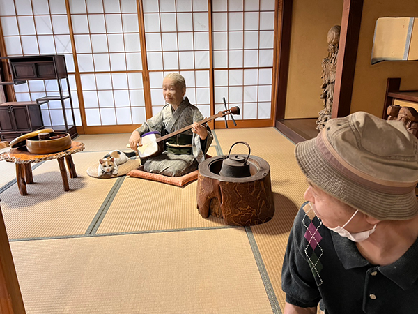 当初は庭園と展示のみでしたが、平成の初め頃に「巴波川秘話」の人形劇を追加しました。また、三味線を弾く“おばあさん”の人型ロボットは平成15年の秋頃に設置され、もう20年以上経ちます。