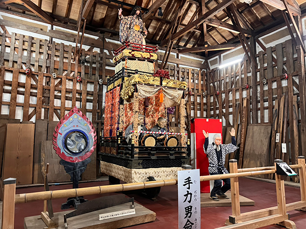 山車の中から人形が上がってくると、ひょっとこが踊りだすという仕組みなんです。