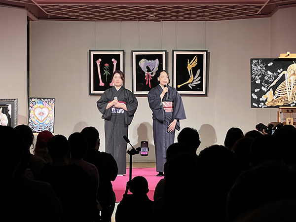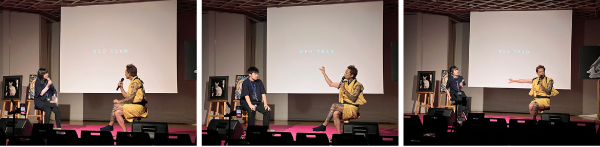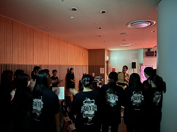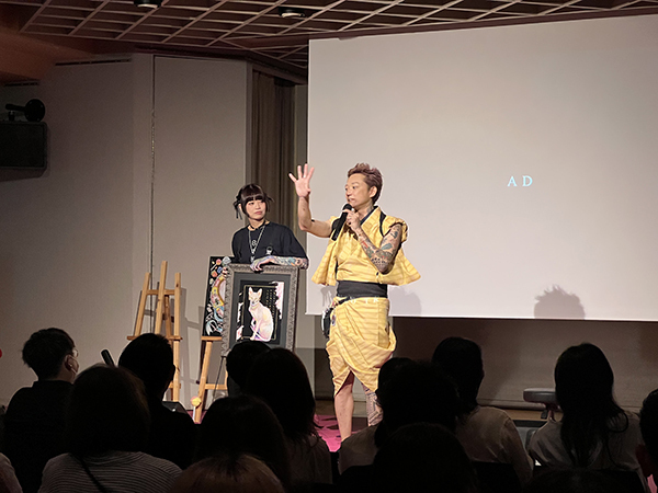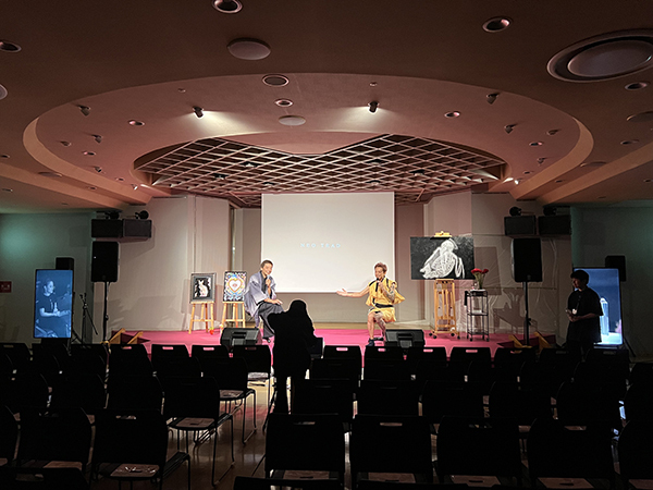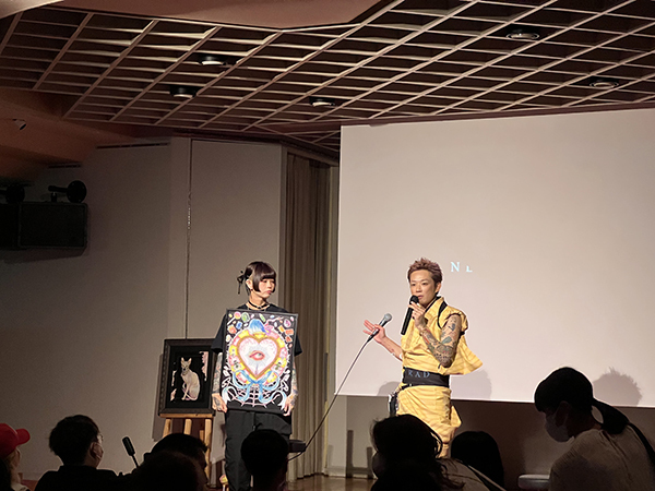 会場に続々と観客が集まる中、今回のメインアーティスト・ペインターのSAYAさんと、プロデューサーのJUNさんによるトークがスタートしました。