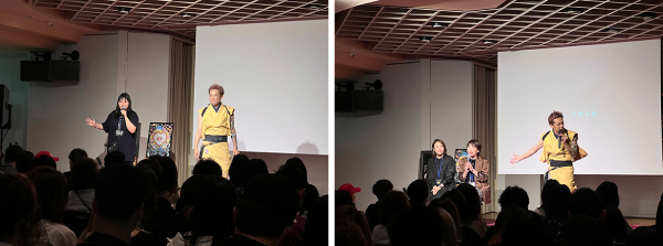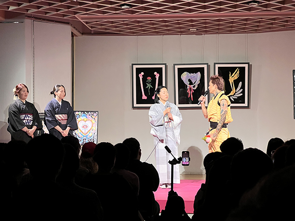 ステージの余韻が残る中、実際にライブ着付けを担当した結城紬のkimono dresserさんたちがマイクを握りました。