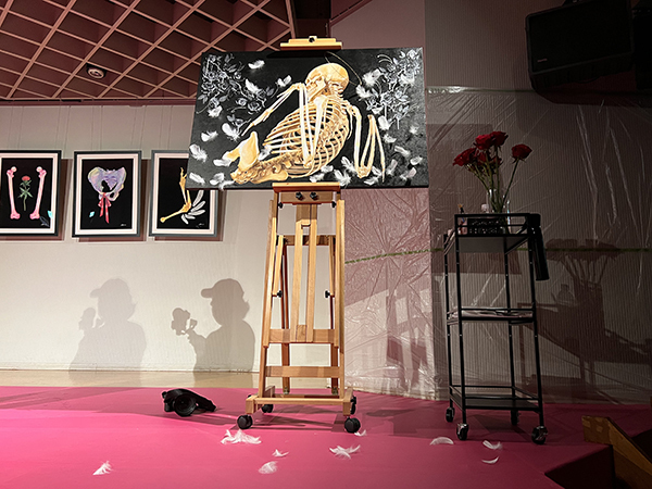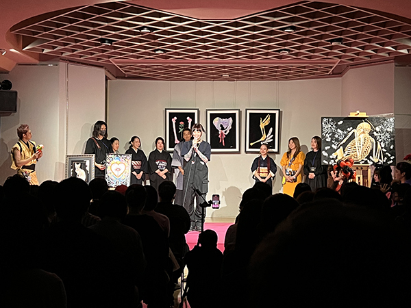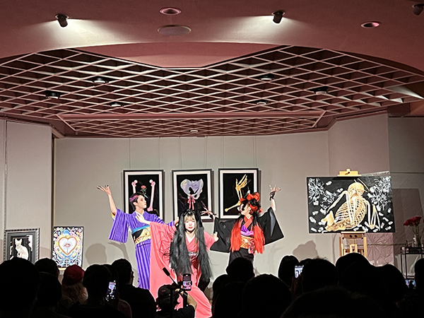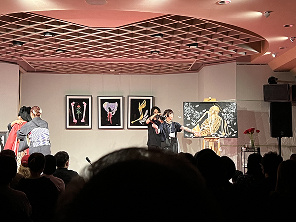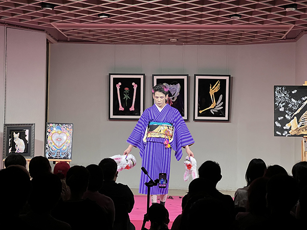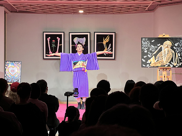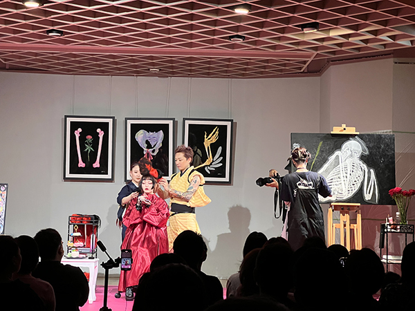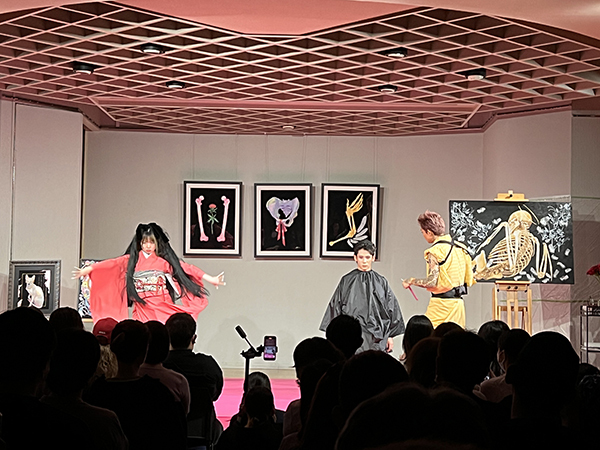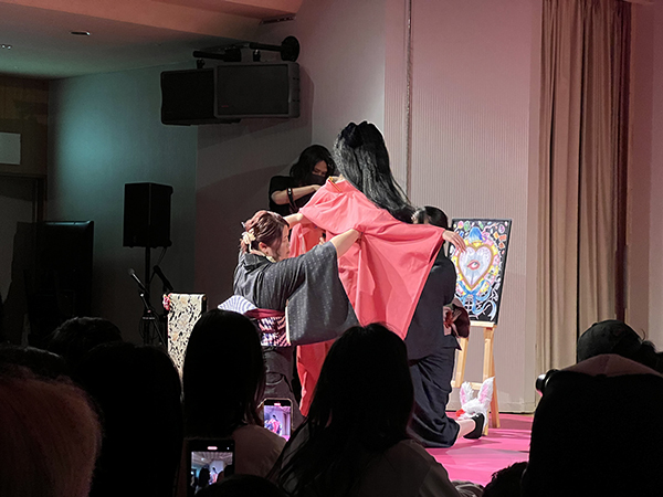 着付けが進む中、ステージのもう一方では、ライブペイントが静かにクライマックスを迎えていました。